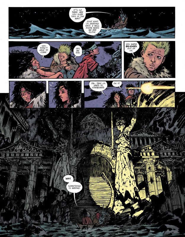 Strip bi se mogao opisati kao mešavina Mad Max-a i Hellboy & BPRD Hell on Earth. Postapokaliptični svet koji je razoren nuklearnim oružjem i gde non stop postoji pretnja invazije čudovišta i demona. Elseworlds priča gde je DWJ menjao neke stvari kod origin-a WW, ona je ovde mnogo jača nego inače jer predstavlja otelotvorenje konana-ratnika-varvarina. Strip nije dugačak, samo četiri poglavlja, pa scenaristički nije ništa vau. Postapokaliptične priče često obrađivana tema pa nema ovde mnogo originalnosti. Autor ubacuje neke ljudske sporedne likove, ali previše su generički napisani i jedva čekaš da prođe njihov deo i počne pesničenje. Ali DWJ ne bi bio to što jeste da stripu ne da svoj lični pečat. Fantastičan crtež, strašno dinamičan i frenetičan, prepun akcije i duela, gde likovi rade WWF kečerske poteze. U ovom delu je čak otišao i korak dalje, ovaj strip će se pamtiti po suludom i otkačenom momentu kada WW oko svog biča obmota kičmu koju je istrgla iz davno počinulog Supermana, i pomoću ovog novog superoružja počne da mlati po neprijateljima. Sličnu stvar je uradio i u Transformersima kada Optimus otkine svoju ruku i njome počne da šamara protivnike kao da ih lupa buzdovanom. Twisted metal! Nema u tom činu neke logike ili smisla, i ni ne treba da bude, ali zabavno je i otkačeno i volim kada autori izmišljaju ovakve stvari.