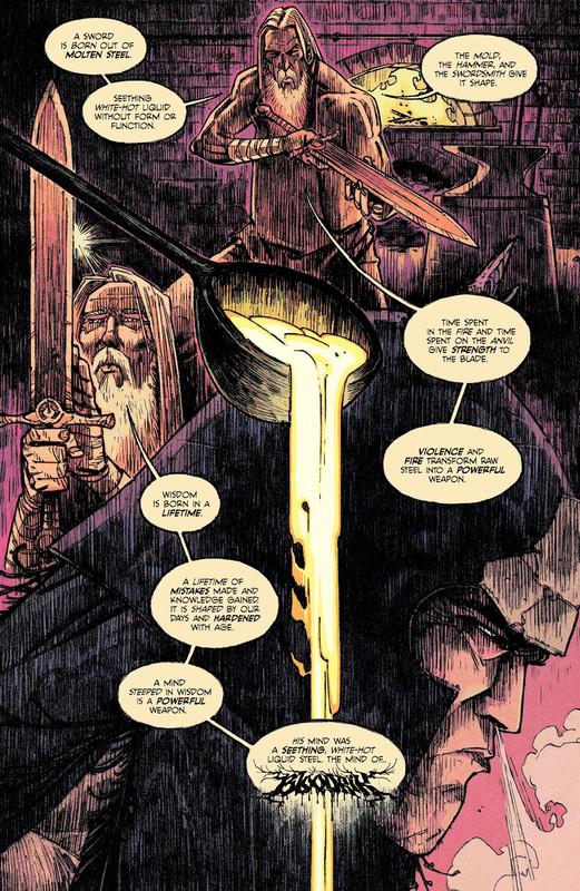 Mišićavi varvarin je sam na vascelom svetu i radi sve što je u njegovoj moći kako bi pronašao hranu i preživeo u okrutnoj prirodi. Priča praktički ne postoji, tokom celog stripa pratimo Bloodrika u njegovoj potrazi za hranom i preživljavanjem. Strip se može opisati kao Konan varvarin u svetu Jack Londona. Teksta ima malo, oblačića skoro uopšte, samo naracija koja prati slike. Autor je priznao da nije scenarista, i da je strip pisao samo da bi imao šta da crta. Crtež vodi radnju i priču i ako strip ima nešto pozitivno to je vizuelni aspekt. Čovek bi pomislio da kada imaš jednog takvog a la Konan lika da će dobiti mač i rascopati neprijatelje, ali ne, nije ovo takav strip. Zapravo ima veoma malo borbi jer sem Bloodrika nema mnogo drugih likova. A i mora se priznati da je komično da imaš jednog takvog mišićavog lika, a kao oružje mu daš luk i strelu. Genijalno. Na netu naišao na par pozitivnih komentara na ovaj strip, ali iskreno ne vidim u čemu je fora.