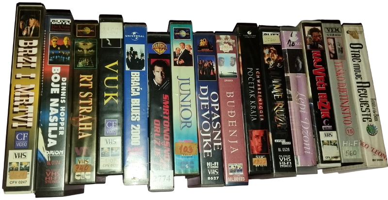 Pitam, jer bi htio polagano krenuti formirati svoju filmsku kolekciju, onako, početi skromno s nekim odabranim naslovima pa ću vidjeti dokud ću stići. Baš sam ovih dana ponovno uspostavio svoj stari videorekorder (gledao neke stare snimke što sam snimao kamerom iz svog djetinstva pa bi nešto htio prebaciti na komp ako skužim kako), te nekako došao na ideju da možda skupljam VHS filmove. Pa ako može savjet, je li se isplati to (cijene i mogućnost izbora, ima li ih još danas u ponudi) ili više preferirate dvd-ove? Važno mi je da prije početka nekog filma ima onih tradicionalnih najava (trailera) filmova koji su mi prije baš bili nekako cool, prije samog početka filma. Ono malo što sam proguglao, izgleda da su dvd-ovi od 50kn naviše, a VHS kasete (ono malo što sam imao prilike vidjeti), prosjek neki po 15kn/komad. I uvjet je da su "naše" stvari, odnosno sa HR titlovima, iako znam eng. i skoro sve razumijem, ali nekako sam navikao na titlove, daju tu neku posebnu čar (iako bi neke možda koji su nedostupni kod nas, nabavljao i bez titlova, možda preko ebaya). Sjećam se na nekim starim VHS filmovima, nekad su titlovi bili žute, nekad čak i crvene boje.