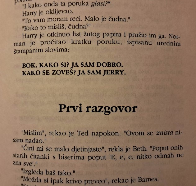 Je, ide dosta dobro, došao danas lagano do 122. stranice, taman do trenutka kad su otkrili "Sferu" Sljedeći manji podnaslov mi je pod nazivom "Prioriteti". Zabavno je bilo do tog trenutka, vjerujem da će sad knjiga, što idem dalje, biti sve bolja i bolja. Kako sam spominjao, Norman je u početku nekako ponajviše bio u fokusu, ali sad su tu drugi likovi dobili svojih "5 minuta slave", bilo mi je zanimljivo za čitati kad je Normanu Ted objašnjavao onaj prostorno vremenski kontinuum i crnu rupu, a fora mi je tu i tamo poneka mala doza humora, recimo ovo na 74. stranici kad su prvi put govorili što će jesti, citiram: