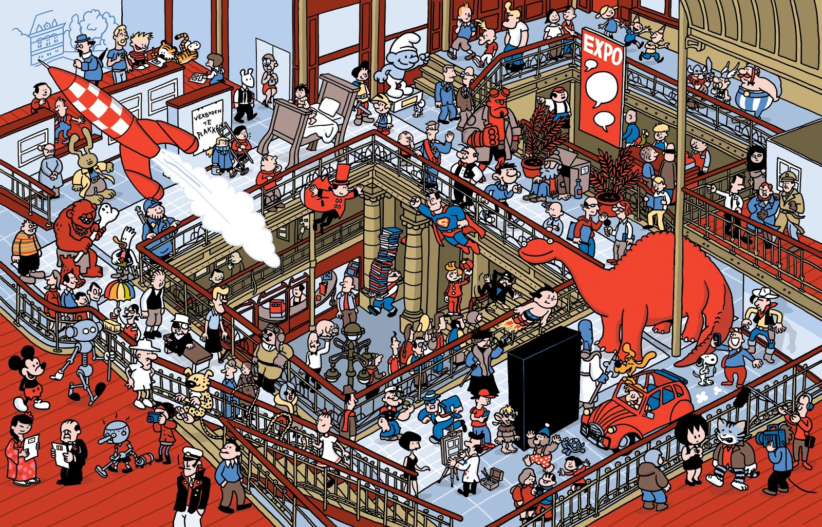 Nacrtao Wally Wood 1962. Objavljeno u MAD-u. Trebalo bi da se svi likovi sa ove slike pojavljuju u nekom naslovu koji je izlazio tada. Koliko možete da pogodite? Ima ih oko stotinu. (Isključiću sebe iz ove igre, jer bi bilo nepošteno - video sam neka rešenja, iako ne sva, a mnoge ionako znam.)