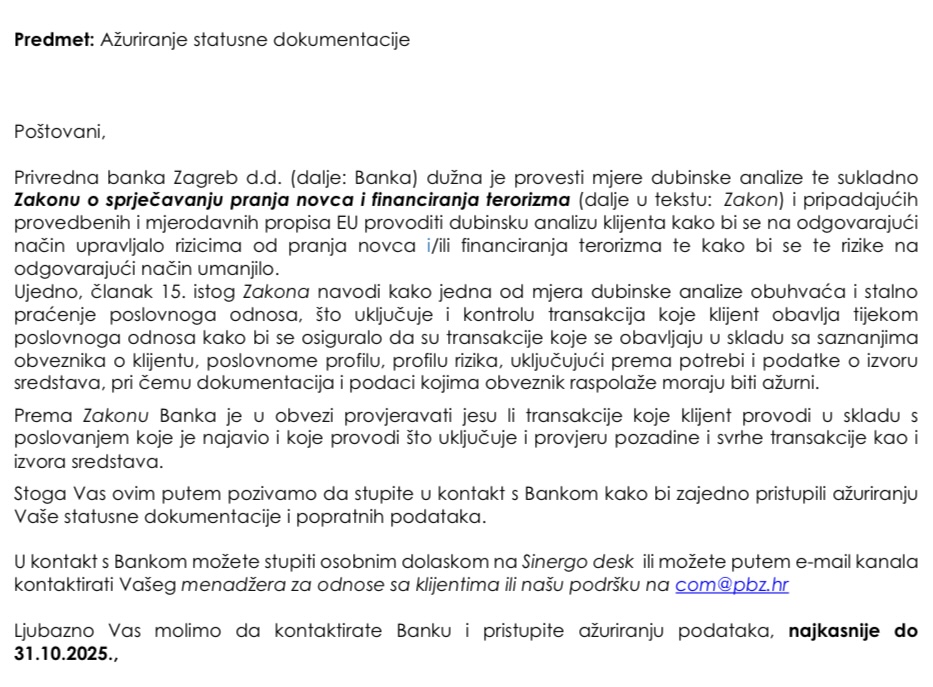 A i ove mailove od banke koje dobivam uopće na čitam, ali sada vidim da me u mailu od neki dan pozivaju na neku dubinsku analizu kako bi provjerili jel financiram teroriste😂 [url=https://postimages.org/] [/url]